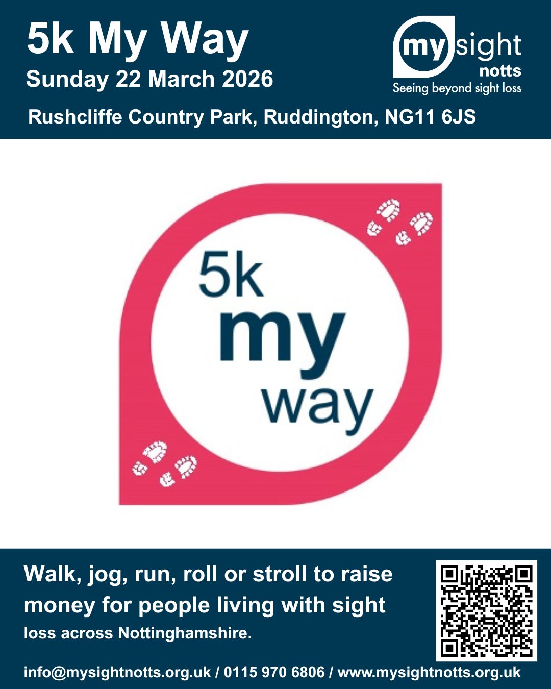 Whether you walk, jog, run, roll or stroll, 5K My Way is your chance to move your way, have fun and make a difference for people living with sight loss across Nottinghamshire.