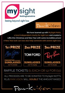 Our wonderful friends at Park Vision opticians are offering some incredible prizes in their Christmas raffle, all in aid of My Sight Notts so please buy your raffle ticket today and share this post with your friends and family so they can be in with a chance of winning some fabulous prizes!